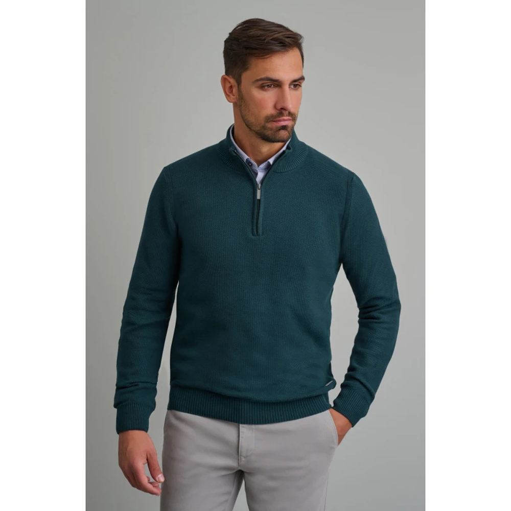 Μονόχρωμο πλεκτό με ανάγλυφη πλέξη (Honeycomb), λουπέτο και zip