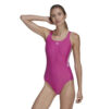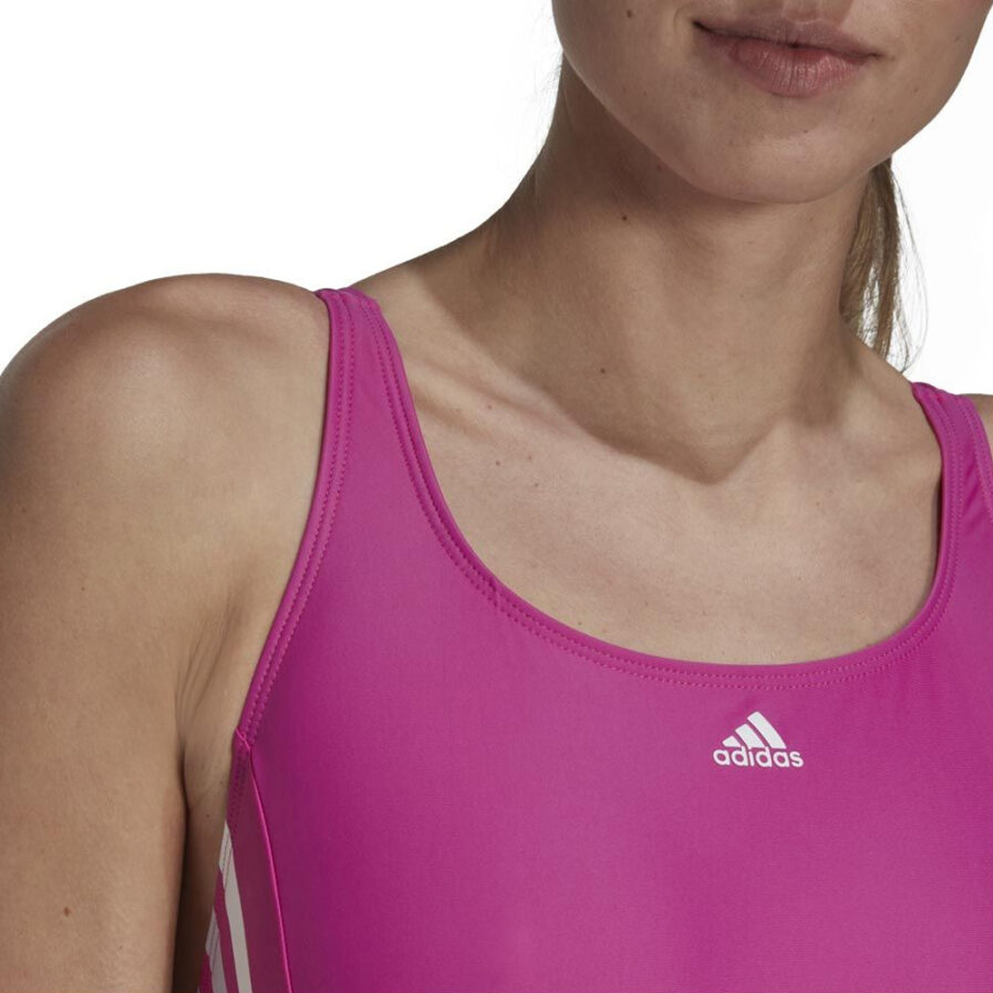 Αθλητικό ολόσωμο μαγιό της εταιρείας Adidas σε φούξια χρώμα με ρίγες, ιδανικό για προπόνηση.