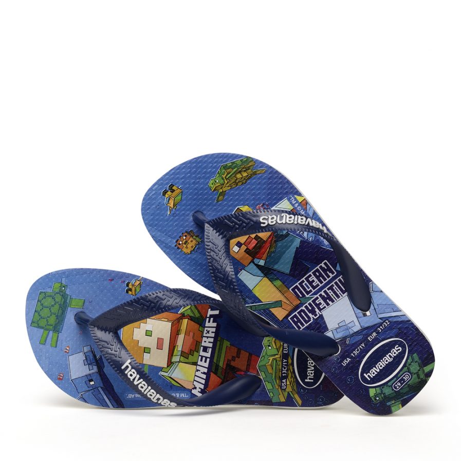 n a combination of fuel and iron ore, the Havaianas Minecraft style has just been released. Survival in this universe will be even better with the collected sandals at your side, which are able to withstand even the explosive creepers, day or night, as well as any other enemies that might arise. The new Havaianas Minecraft style are offered in a range of sizes that fit both children and adults – too useful to leave stored in the trunk.