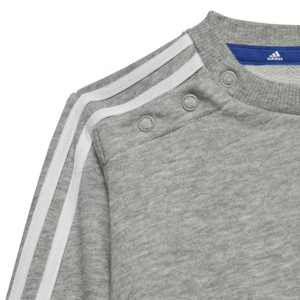Τα μικρά παιδιά αν τρέχουν, σκαρφαλώνουν και χοροπηδούν. Αυτό το βρεφικό adidas σετ τους χαρίζει άνεση σε ό,τι κι αν κάνουν. Φτιαγμένο από μαλακό ύφασμα με βαμβάκι, χαρίζει μοναδική άνεση στο μικρό σου για να είναι όσο δραστήριο θέλει. Διαθέτει πρεσσαριστά κουμπιά στον ώμο και στρογγυλή λαιμόκοψη για να φοριέται εύκολα. Το παντελόνι ρυθμίζεται στη μέση για σταθερή εφαρμογή στις καθημερινές του περιπέτειες.