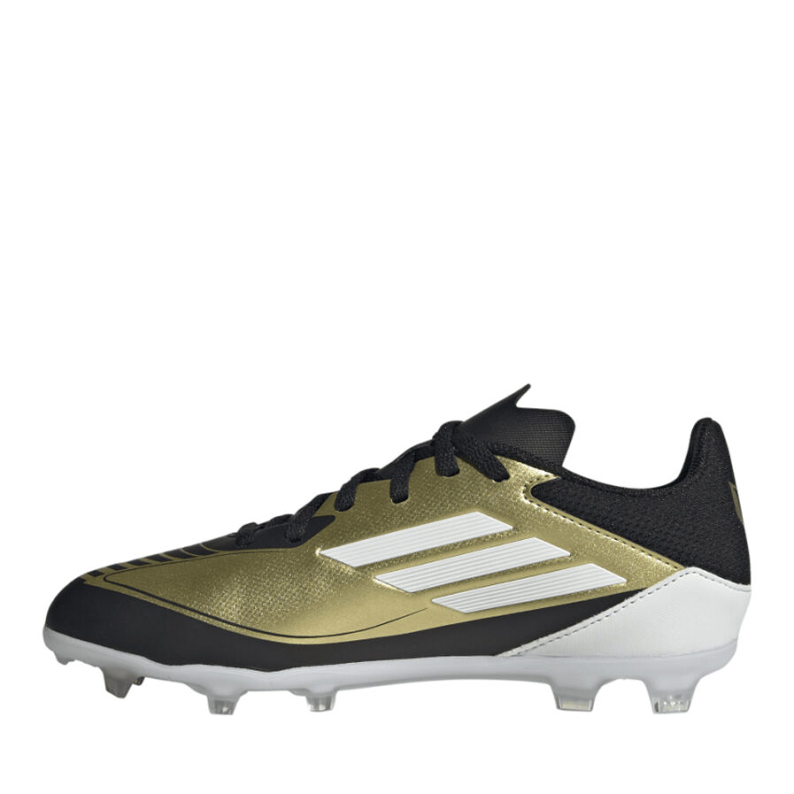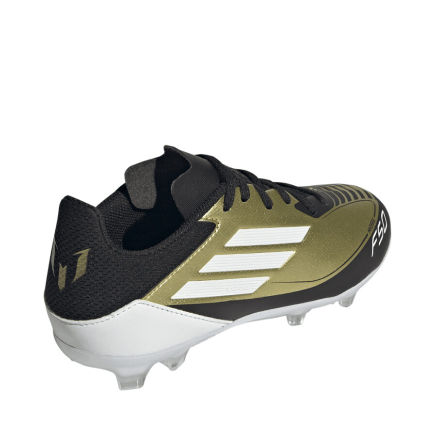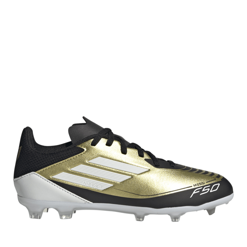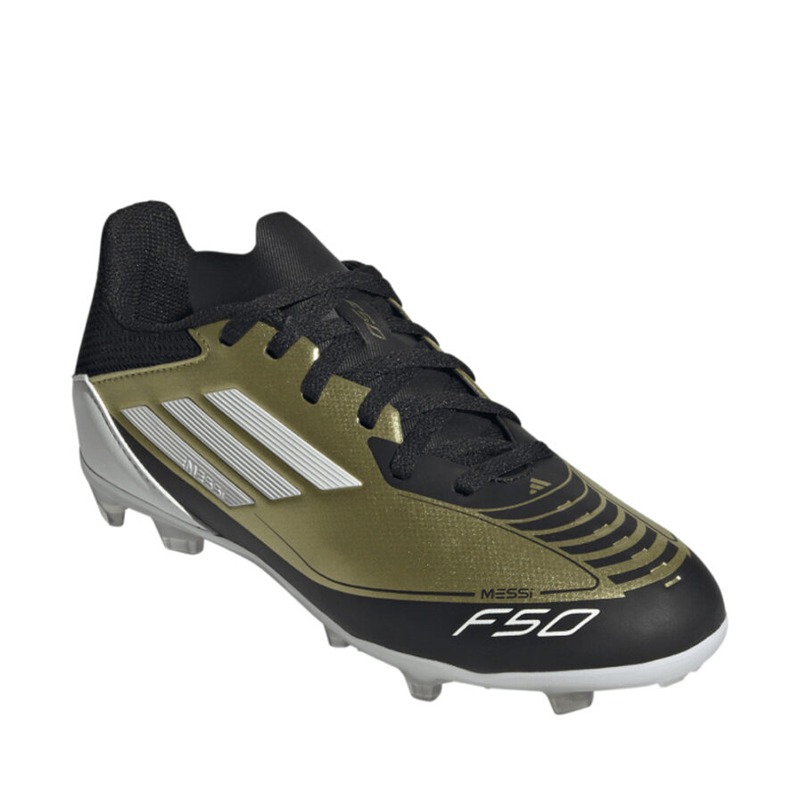 F50 ταχύτητα, Messi στιλ. Το 2024, τα adidas ποδοσφαιρικά παπούτσια του Lionel Messi σχεδιάστηκαν για να ταιριάζουν ακόμα περισσότερο στις προτιμήσεις του. Αυτά τα παιδικά F50 League ποδοσφαιρικά παπούτσια έχουν ελαστικό HybridTouch επάνω μέρος με συνθετική γλώσσα για ανάλαφρη αίσθηση και άνεση. Στο κάτω μέρος, η εξωτερική σόλα Sprintplate 360 προσφέρει ώθηση σε διάφορες επιφάνειες.