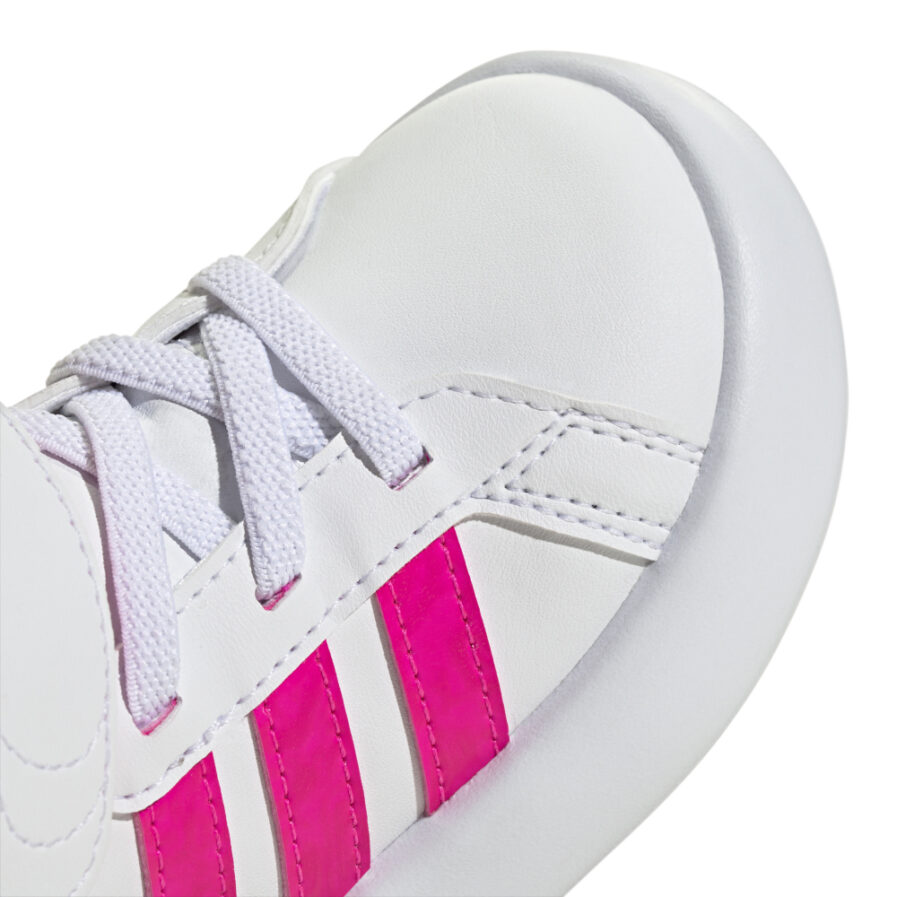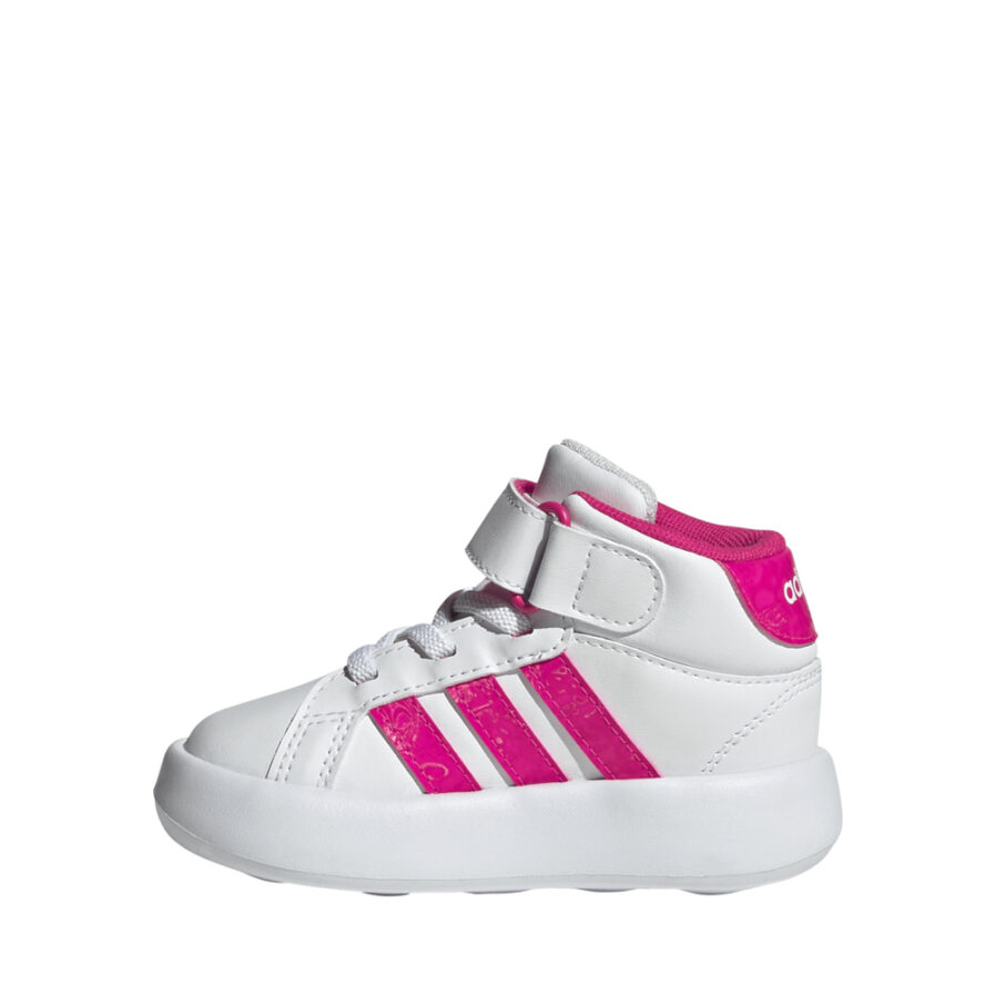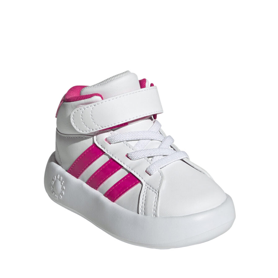 Τα Adidas Grand Court Mid σε λευκό χρώμα είναι βρεφικά sneakers σχεδιασμένα για κορίτσια που χρειάζονται στυλ και άνεση από τα πρώτα βήματα. Με μεσαίο ύψος για επιπλέον στήριξη στον αστράγαλο, αυτά τα παπούτσια προσφέρουν ανθεκτικότητα και ελαφριά κατασκευή για εύκολη κίνηση. Ο μοντέρνος σχεδιασμός τους συνδυάζεται τέλεια με κάθε outfit, ενώ η μαλακή επένδυση εξασφαλίζει άνεση καθ’ όλη τη διάρκεια της ημέρας.