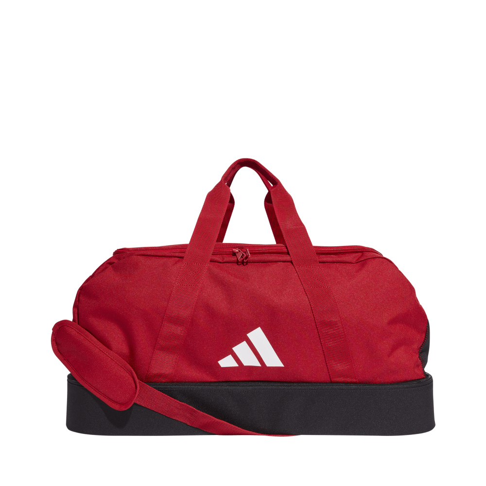 Αθλητική τσάντα ώμου της εταιρείας Adidas, σε κόκκινο χρώμα με διαστάσεις 58x29cm. Είναι κατάλληλη για ποδόσφαιρο καθώς παρέχει ειδικό ξεχωριστό χώρο για την τοποθέτηση των ποδοσφαιρικών παπουτσιών σου, ώστε αυτά να μην έρχονται σε επαφή με τα ρούχα ή την πετσέτα σου. Διαθέτει ευρύχωρη κύρια θήκη για την μεταφορά ολόκληρου του εξοπλισμού σου, ενώ τα χερούλια και το λουράκι ώμου προσφέρουν ευέλικτες επιλογές ώστε να την κρατάς όπως σε βολεύει, πηγαίνοντας στον αγώνα ή στην προπόνηση σου.