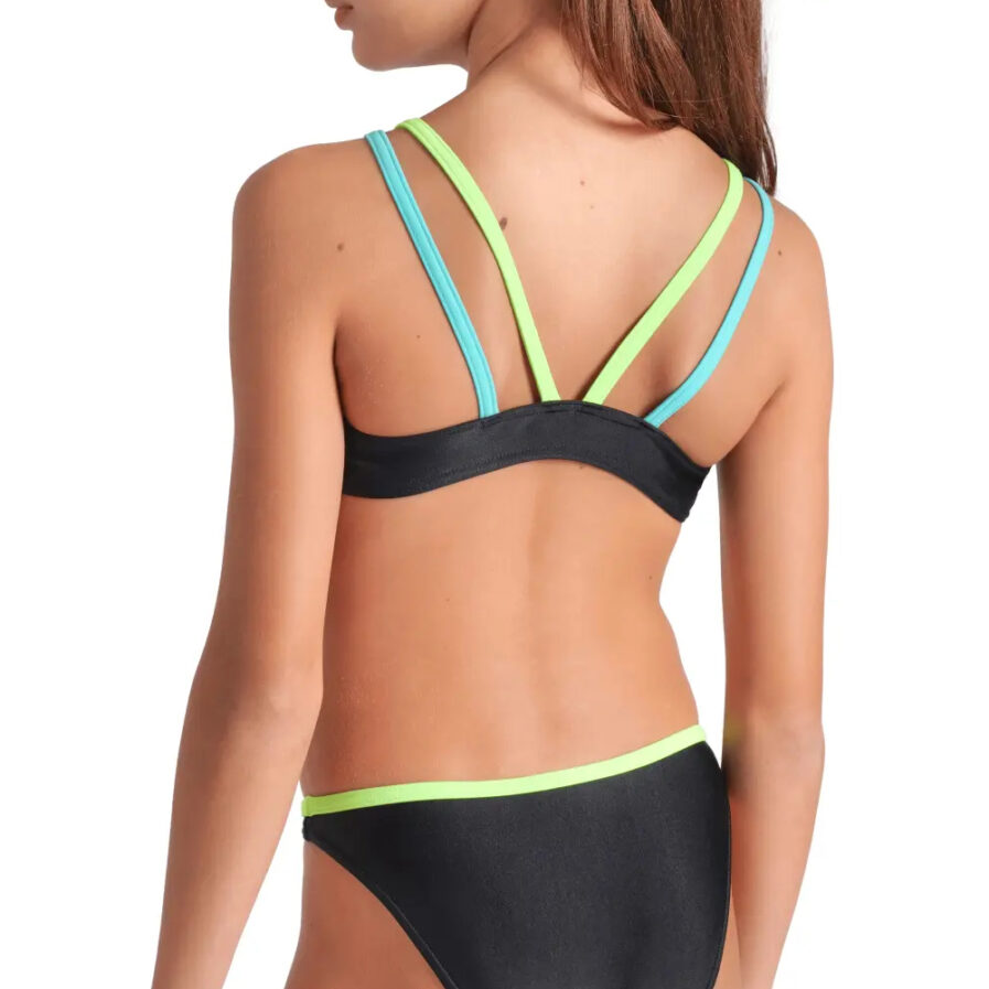 Το στυλάτο και εξαιρετικά ελαστικό μαγιό Solid Bikini για κορίτσια ανήκει στη σειρά arena Feel, η οποία προσφέρει εξαιρετική άνεση και εφαρμόζει σαν δεύτερο δέρμα. Είναι ιδανικό για τις κολμβήτριες fitness που εκτελούν οποιαδήποτε δραστηριότητα στο νερό, είτε στην πισίνα, είτε στην παραλία, είτε σε άλλες υδάτινες περιοχές. Κατασκευασμένο από υλικό ανθεκτικό στο χλώριο και γρήγορο στο στέγνωμα, το οποίο προέρχεται από ανακυκλωμένο πολυεστέρα, ενώ η περιεκτικότητα του σε ελαστάνη εξασφαλίζει τέλεια εφαρμογή και απόλυτη άνεση. Το τοπ με διπλές τιράντες παρέχει ευχέρεια κίνησης κατά την κολύμβηση ή δραστηριότητες στην παραλία. Το σλιπ διαθέτει εσωτερικό ρυθμιζόμενο κορδόνι για ασφαλή εφαρμογή. Η πιστοποίηση OEKO-TEX® STANDARD 100 του υφάσματος σημαίνει ότι έχει ελεγχθεί για επιβλαβείς ουσίες και είναι ακίνδυνο για την ανθρώπινη υγεία και το περιβάλλον.