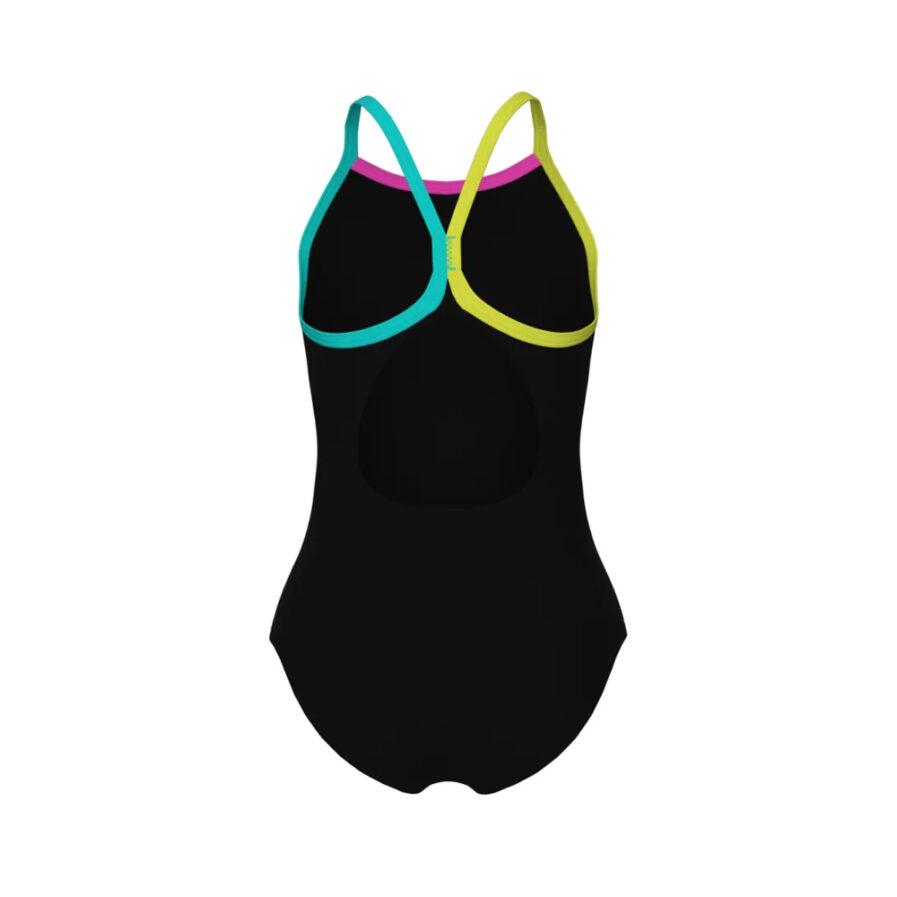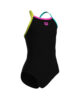 ΧΑΡΑΚΤΗΡΙΣΤΙΚΑ: Παιδικό ολόσωμο μαγιό κολύμβησης για κορίτσια με αθλητική πλάτη. Είναι φτιαγμένο κατά 82% από ανακυκλωμένο πολυεστέρα από πλαστικά μπουκάλια και κατά 18% από ελαστάνη. Αυτά τα δυο υλικά συνθέτουν ένα μαγιό οικολογικό, λαμπερό, μ’ ελαστικότητα και μεγάλη ανθεκτικότητα στο χλωριωμένο νερό της πισίνας.