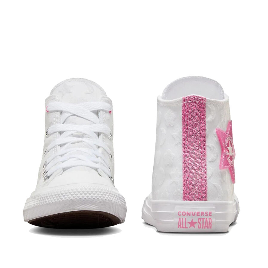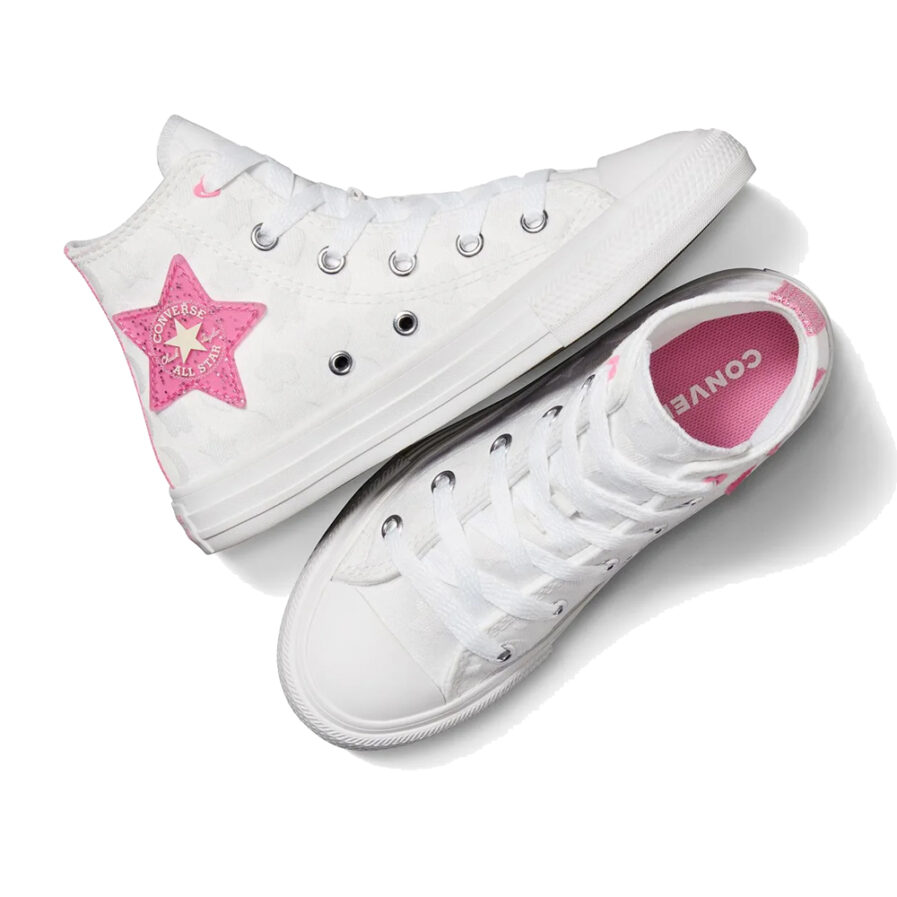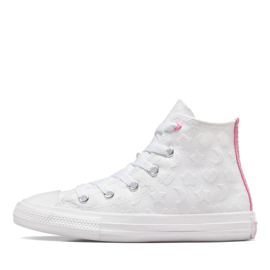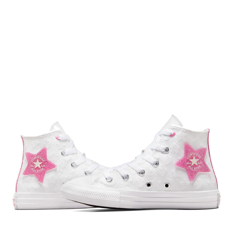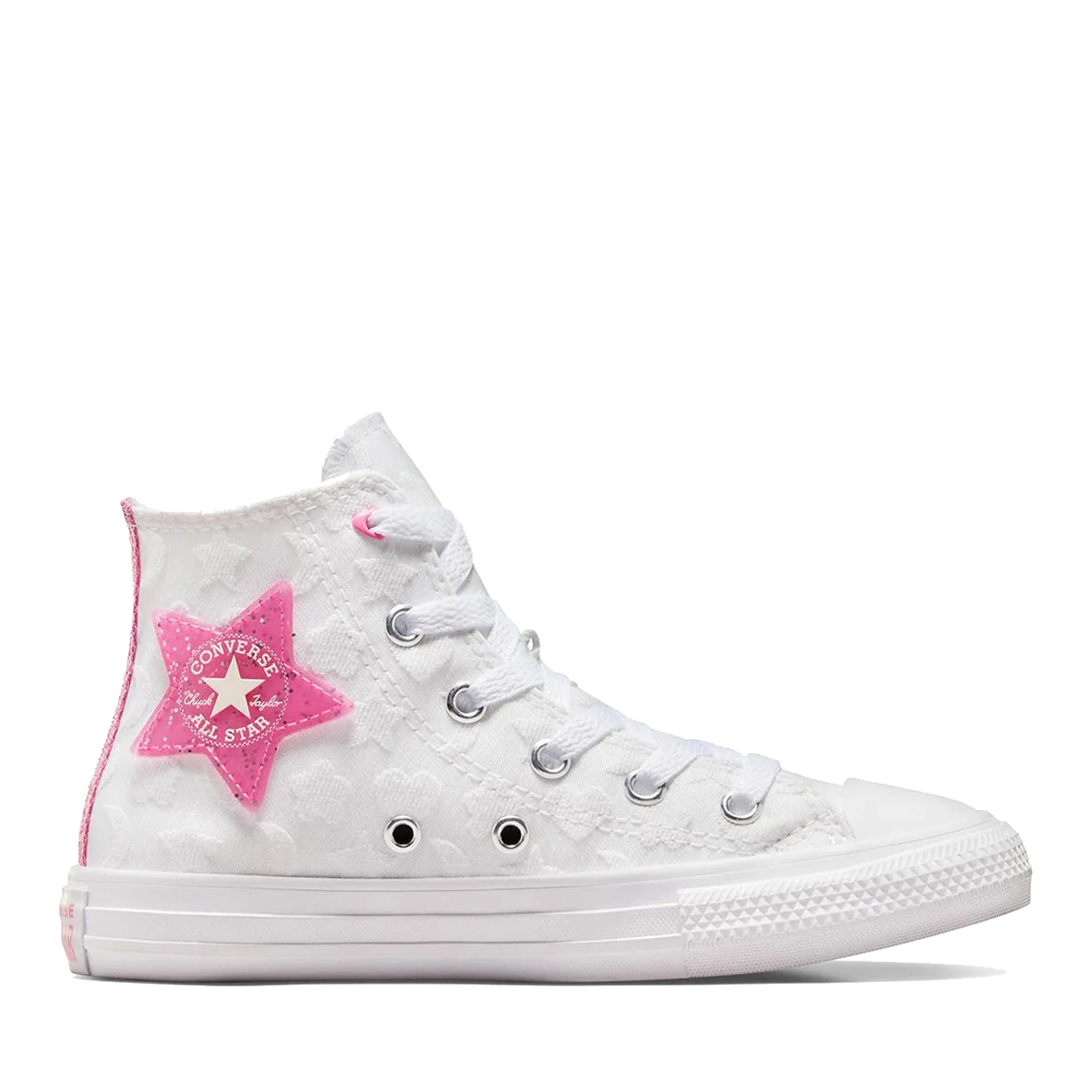 Παιδικά sneakers Chuck Taylor All Star της εταιρείας Converse, τα οποία αποτελούν την πιο κλασική επιλογή για καθημερινή χρήση, χωρίς να κουράζουν τα πόδια των παιδιών. Είναι ένα διαχρονικό σχέδιο υποδημάτων, το οποίο τα παιδιά μπορούν να το φοράνε σε κάθε ηλικία, ενώ