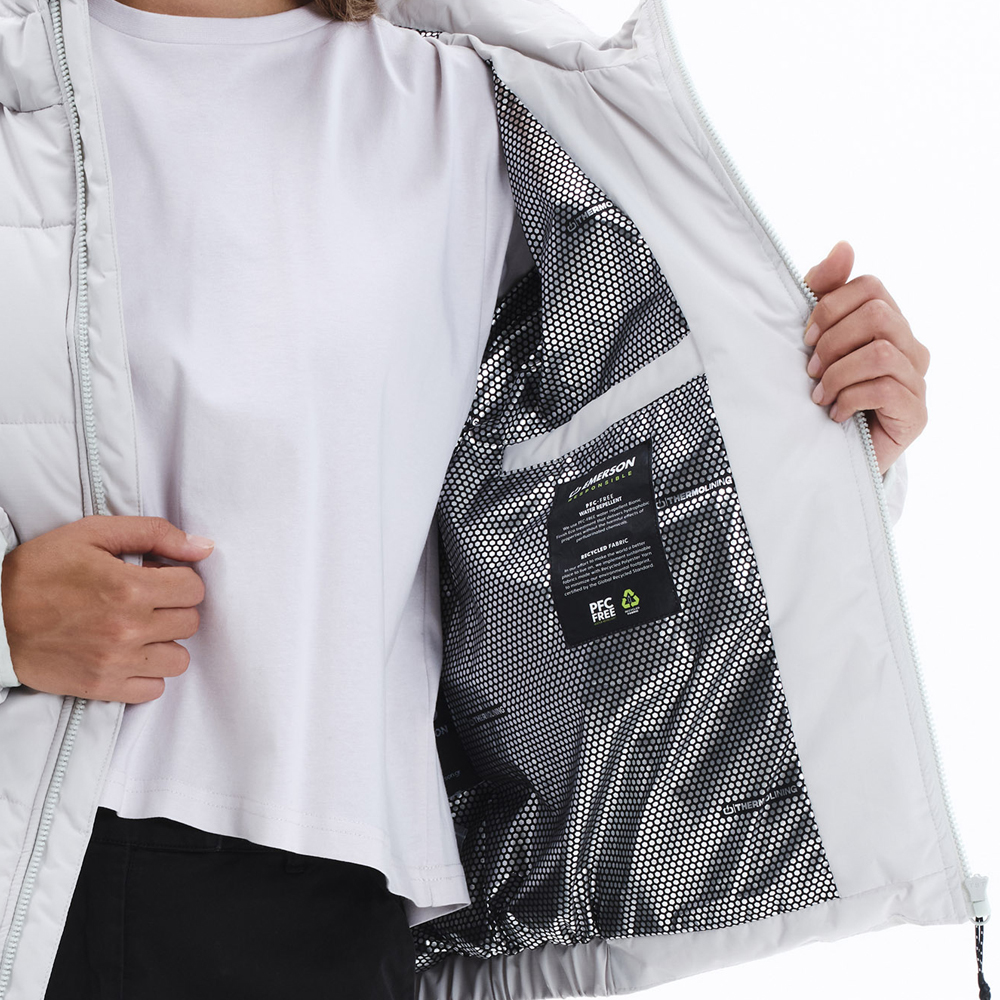 Αυτό το μπουφάν puffer EMERSON, είναι σχεδιασμένο για να νιώθεις άνετη όλη μέρα. Το γέμισμά του από ανακυκλωμένο συνθετικό πούπουλο SOFEELATE® προσφέρει υψηλή θερμομόνωση, παρόμοια με εκείνη του φυσικού πούπουλου και το διαπνεόμενο, φιλικό προς το περιβάλλον ύφασμα, προσφέρει ζεστασιά και προστασία από τη βροχή και τον κρύο αέρα. Το εσωτερικό του μπουφάν διαθέτει τεχνολογία ThermoLining που αντανακλά και διατηρεί τη θερμότητα του σώματος και βοηθάει στη διατήρηση της θερμότητας του αυξάνοντας την αντοχή του σε χαμηλές θερμοκρασίες. Οι μανσέτες και το τελείωμα διαθέτουν ελαστική ταινία που σταματάει τον κρύο αέρα, ενώ οι πολλαπλές τσέπες του κρατούν όλα τα απαραίτητα αντικείμενά σου οργανωμένα και ασφαλή. Είναι ένα ιδανικό μπουφάν για καθημερινή χρήση.