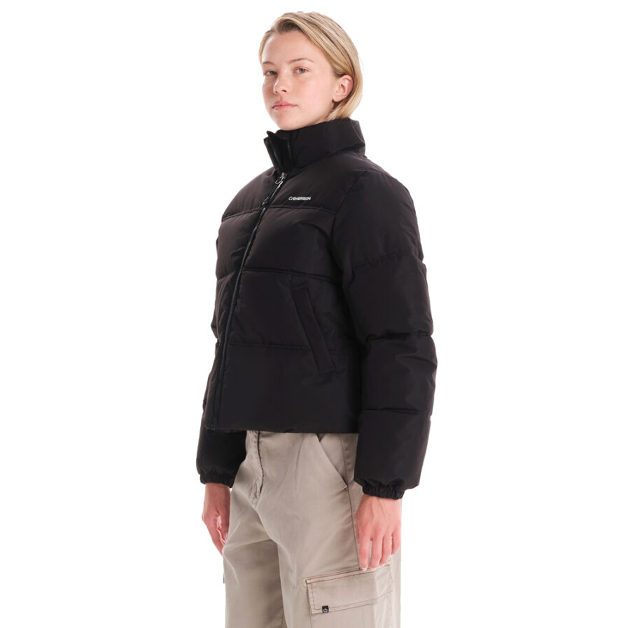Αυτό το μπουφάν puffer EMERSON μέσου βάρους, είναι σχεδιασμένο για να νιώθεις άνετη όλη μέρα. Το εξωτερικό ύφασμα συνδυάζεται με οικολογικό γέμισμα ώστε τόσο ο αερισμός όσο και η ευελιξία σου να είναι εγγυημένα. Το διαπνεόμενο ύφασμα προσφέρει ζεστασία και προστασία από τη βροχή και τον αέρα. Οι μανσέτες και το τελείωμα διαθέτουν ελαστική ταινία που σταματάει τον κρύο αέρα, ενώ οι 4 τσέπες κρατούν όλα τα απαραίτητα αντικείμενά σου οργανωμένα και ασφαλή. Είναι ένα ιδανικό μπουφάν για καθημερινή χρήση.
