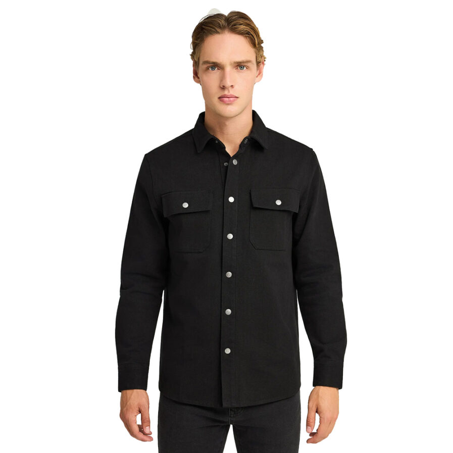 Πολυχρηστικό ανδρικό τζιν πουκάμισο σε σκούρες αποχρώσεις, σχεδιασμένο σε κανονική γραμμή με ίσια κοπή και μήκος μέχρι τους γοφούς. Κατασκευασμένο από denim με ματ υφή, διαθέτει κλασικό γιακά, μακριά μανίκια με δίχρωμες μανσέτες δύο κουμπιών και τσέπες με καπάκι. Το κουμπωτό κλείσιμο και η διακριτική σχεδίαση το καθιστούν ιδανικό για καθημερινές αλλά και smart εμφανίσεις. Ένα denim essential που συνδυάζεται τέλεια με ανοιχτόχρωμο τζιν ή casual παντελόνι για κομψό και διαχρονικό look.