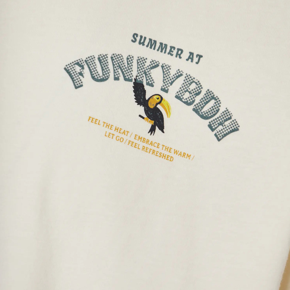 Ανανέωσε το στυλ σου με ένα statement t-shirt που σε μεταφέρει απευθείας σε μια εξωτική απόδραση. Το εντυπωσιακό tropical back print με τους παιχνιδιάρικους χαρακτήρες και το jungle vibe ξεχωρίζει χωρίς προσπάθεια. Ιδανικό για κάθε στιγμή της ημέρας, δίνει στο look σου μια fun και περιπετειώδη διάθεση.