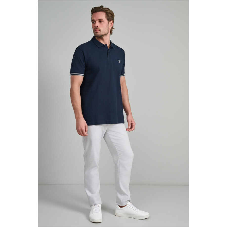 Μονόχρωμη Πικέ (pique) μπλούζα πόλο (polo) με jacquard (πλέξη που προσδίδει ανάγλυφη εικόνα) γιακά και ribs στα μανίκια