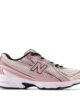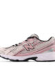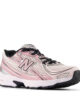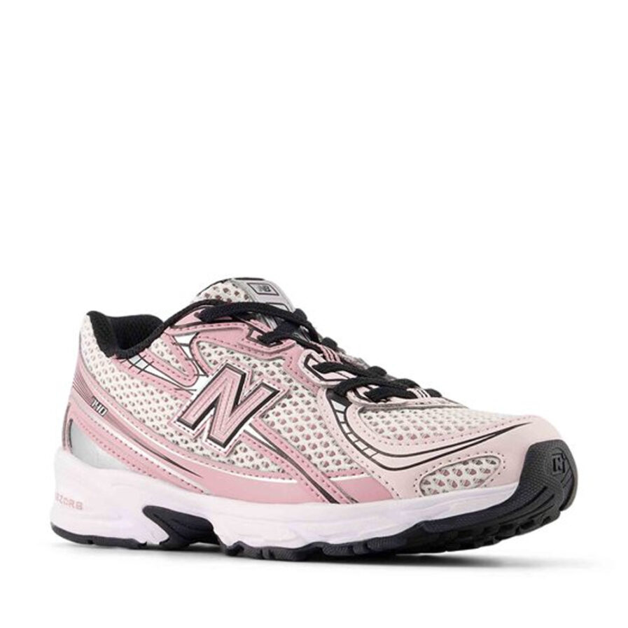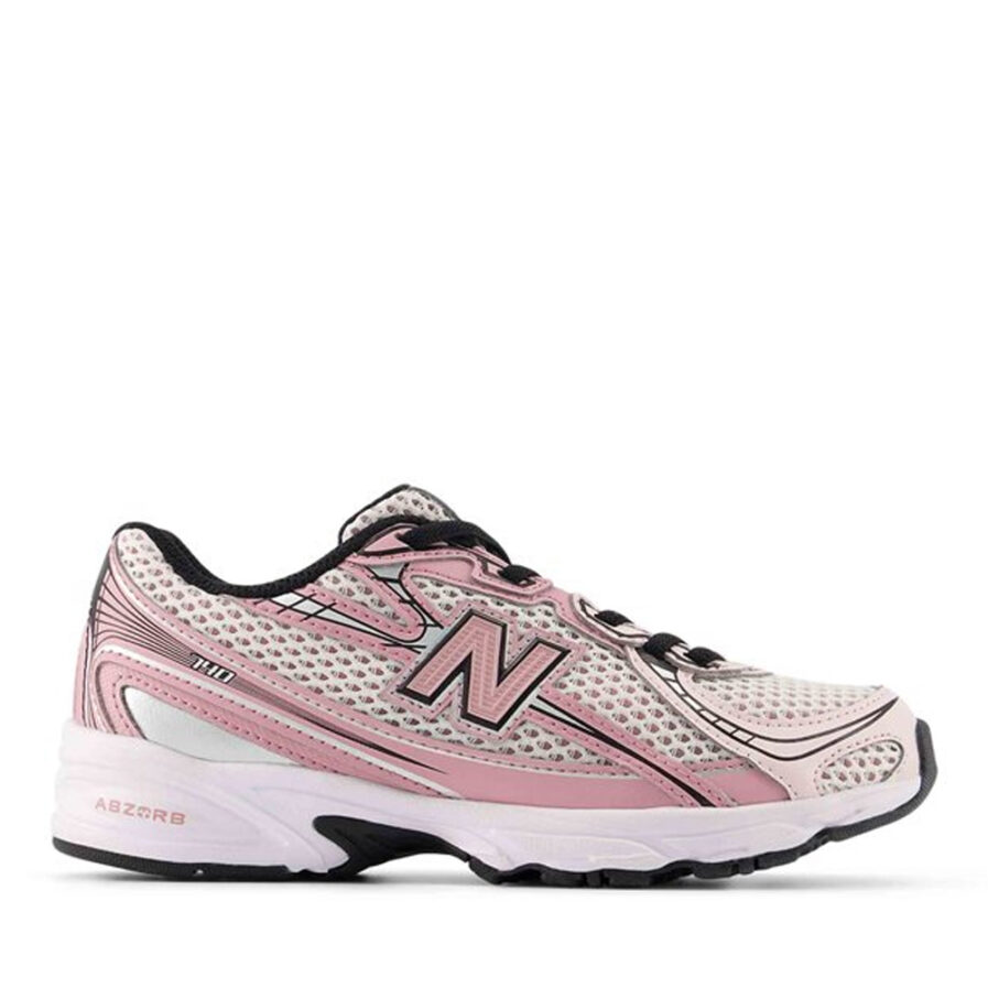 Παιδικά αθλητικά παπούτσια για κορίτσια με ρετρό επιρροές, σχεδιασμένο για άνεση. Το επάνω μέρος είναι ένας συνδυασμός από πλέγμα και συνθετικές επικαλύψεις σε αποχρώσεις του ροζ, του λευκού και του μαύρου, με ασημί λεπτομέρειες.