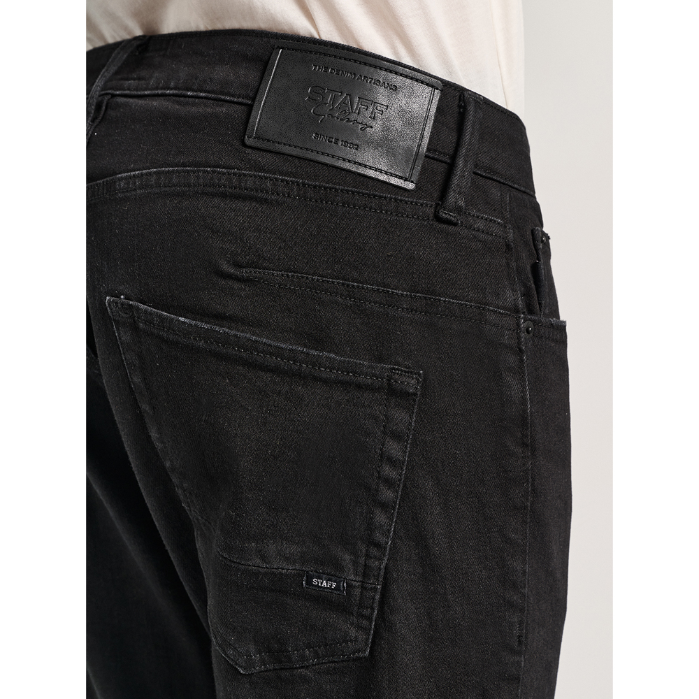 Simon ανδρικό Μαύρο τζιν παντελόνι σε στενή γραμμή. 5τσεπο και δερμάτινη ετικέτα Staff Gallery στο πίσω μέρος. Κλείσιμο μπροστά με κουμπιά. Κατασκευασμένο από κομψό μαύρο ύφασμα ξεχωρίζει για την εφαρμογή και την εμφάνιση. Το Μοντέλο Φοράει 32 με διαστάσεις Υψος 1.90 - Στήθος 99 - Μέση 81 - Περιφέρεια 97 98,5%Βαμβάκι, 1,5% Ελαστίνη.
