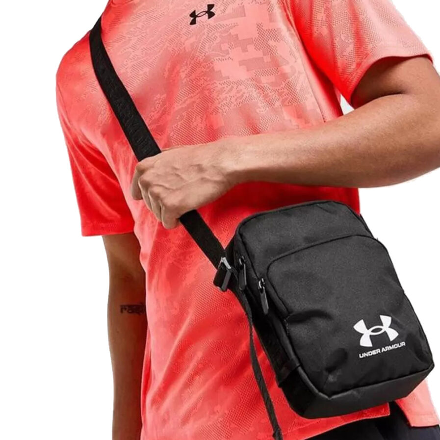 Ανδρική τσάντα της εταιρείας Under Armour σε μαύρο χρώμα. Ιδανική επιλογή για όλες τις ώρες της ημέρας, φοριέται στον ώμο ή χιαστί για μεγαλύτερη άνεση. Το κύριο μέρος της τσάντας κλείνει με φερμουάρ, παρέχοντας ασφάλεια κατά τη μεταφορά των προσωπικών αντικειμένων. Υπάρχουν εσωτερικές θήκες για την καλύτερη οργάνωση των αντικειμένων.