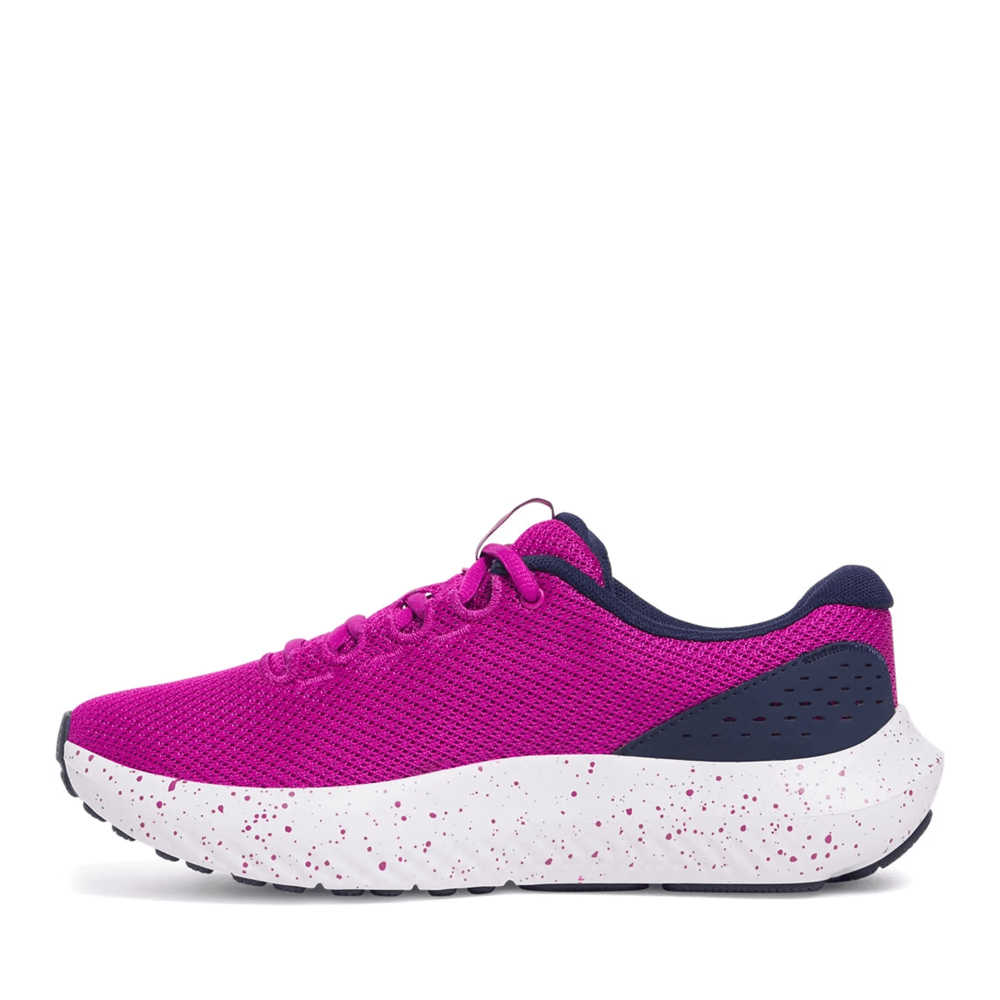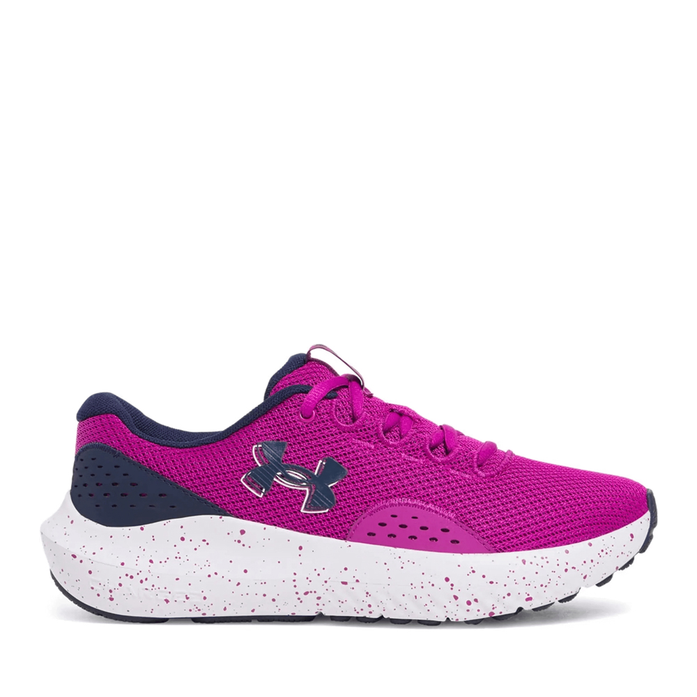 Το Under Armour Surge 4 είναι ένα γυναικείο αθλητικό παπούτσι τρεξίματος που προσφέρει άνεση και στήριξη κατά τη διάρκεια της προπόνησης σας. Το άνω μέρος από πλέγμα παρέχει διαπνοή και ελαφρύτητα, ενώ η TPU φτέρνα προσφέρει στήριξη και άψογη εφαρμογή. Η εσωτερική σόλα EVA και η συμπιεσμένη ενδιάμεση σόλα EVA προσφέρουν αντικραδασμική προστασία και στήριξη, ενώ η εξωτερική σόλα από καουτσούκ με “άγριο” μοτίβο προσφέρει άριστη πρόσφυση σε διάφορες επιφάνειες.
