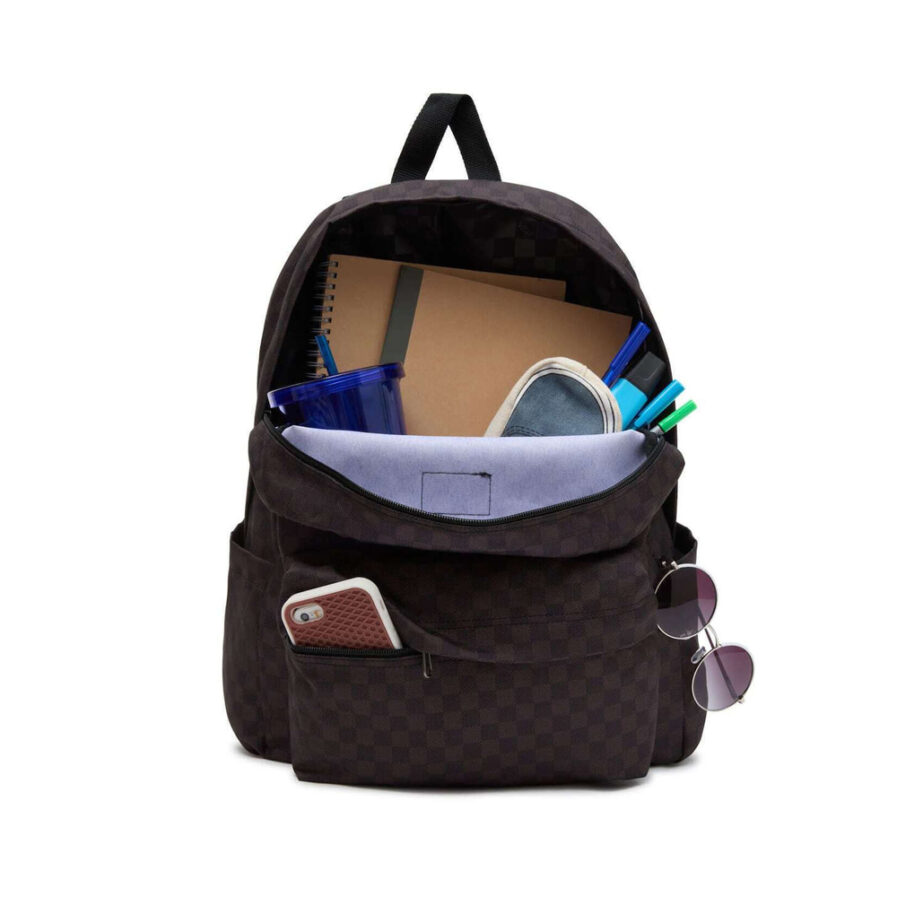 Σχολική τσάντα η οποία μπορεί να φορεθεί στην πλάτη, κατάλληλη για παιδιά γυμνασίου - λυκείου της εταιρίας Vans σε μαύρο χρώμα χωρητικότητας 22 λίτρων Ύψος: 42.5εκ Μήκος: 32.4εκ Πλάτος: 12.1εκ