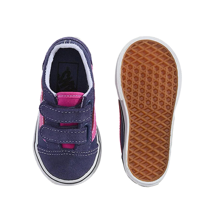 Παιδικά sneakers Old Skool της εταιρείας Vans, τα οποία αποτελούν την πιο κλασική επιλογή για καθημερινή χρήση. Είναι κατασκευασμένα από συνδυασμό δέρματος σαμουά, φυσικό δέρμα και υφασμάτινη ύλη. Διαθέτουν στρογγυλή, ελαφρώς ενισχυμένη μύτη και ενισχυμένο τακούνι, αντιολισθητική εξωτερική σόλα από καουτσούκ, το signature side stripe logo της Vans ενώ κλείνουν με αυτοκόλλητα σκρατς για εύκολη εφαρμογή.