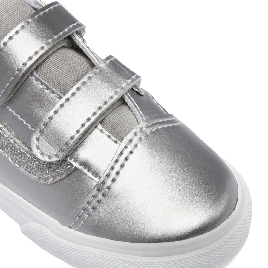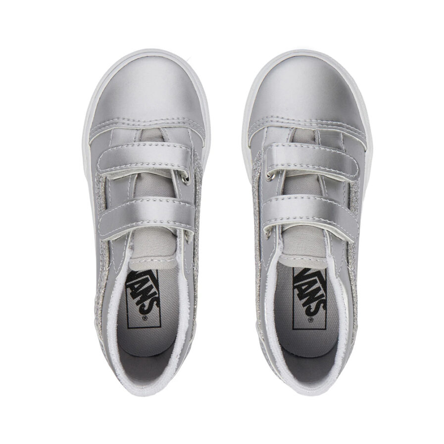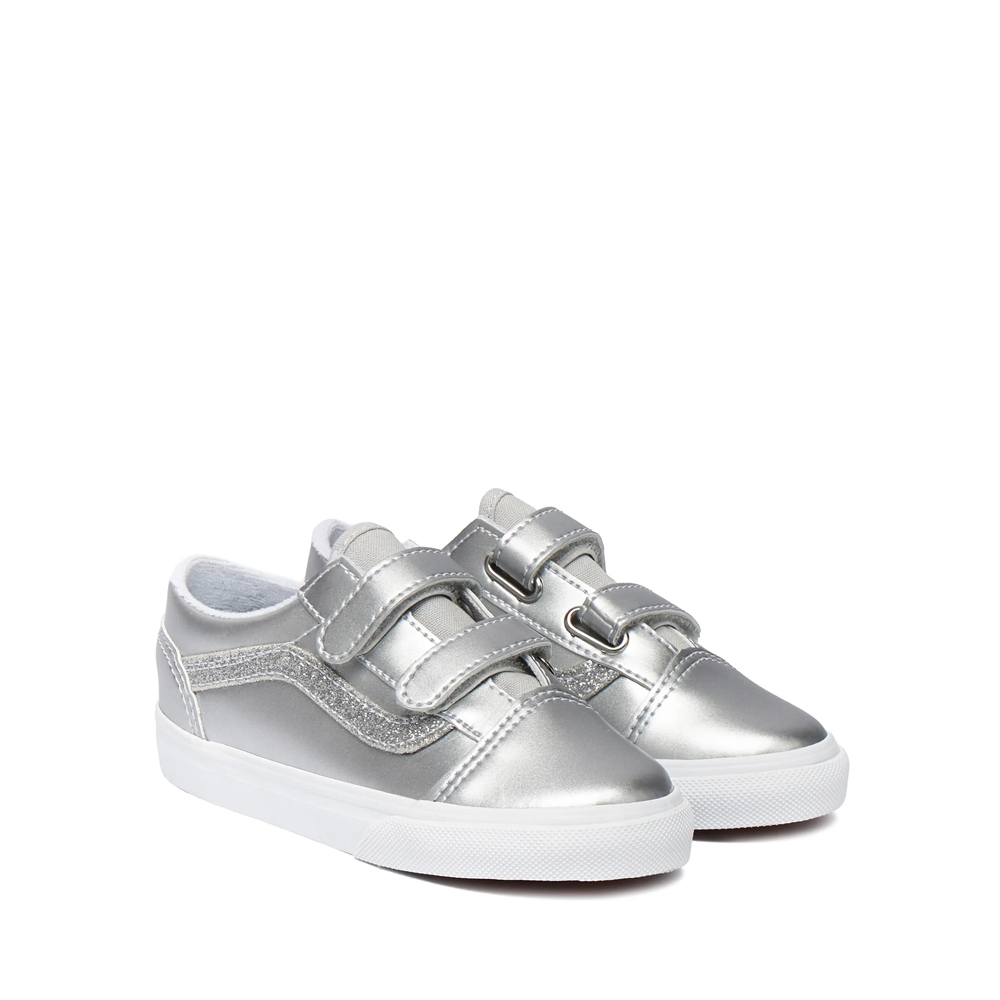 Παιδικά sneakers Old Skool της εταιρείας Vans, τα οποία αποτελούν την πιο κλασική επιλογή για καθημερινή χρήση. Είναι κατασκευασμένα από συνδυασμό δέρματος σαμουά, φυσικό δέρμα και υφασμάτινη ύλη. Διαθέτουν στρογγυλή, ελαφρώς ενισχυμένη μύτη και ενισχυμένο τακούνι, αντιολισθητική εξωτερική σόλα από καουτσούκ, το signature side stripe logo της Vans ενώ κλείνουν με αυτοκόλλητα σκρατς για εύκολη εφαρμογή.